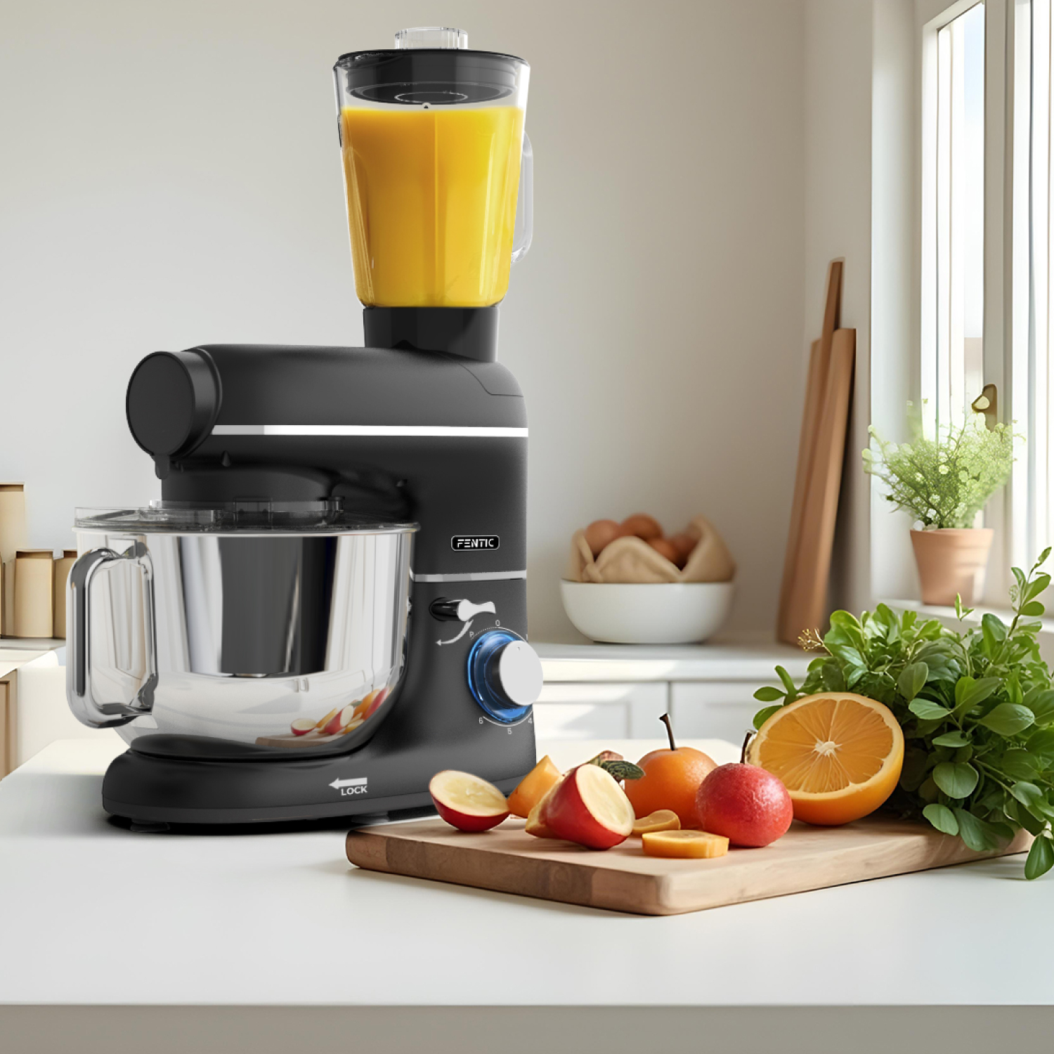 Fentic Robot Pâtissier 6-en-1 – Pétrin, Mixeur, Food Processor, Hachoir à Viande, Coupe-Légumes, 2000W, Bol en Acier Inox 6,2L