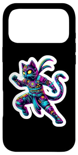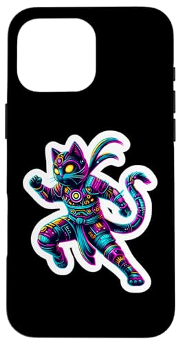 Robot Ninja Steampunk Chat Couleurs Vives Propriétaire Amoureux Coque pour iPhone 16 Pro