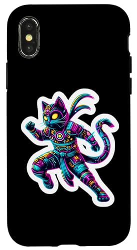 Robot Ninja Steampunk Chat Couleurs Vives Propriétaire Amoureux Coque pour iPhone X/XS