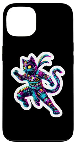 Robot Ninja Steampunk Chat Couleurs Vives Propriétaire Amoureux Coque pour iPhone 14