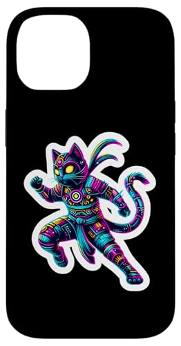 Robot Ninja Steampunk Chat Couleurs Vives Propriétaire Amoureux Coque pour iPhone 14 Plus