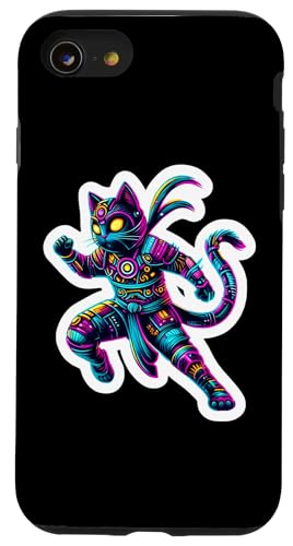 Robot Ninja Steampunk Chat Couleurs Vives Propriétaire Amoureux Coque pour iPhone SE (2020) / 7/8