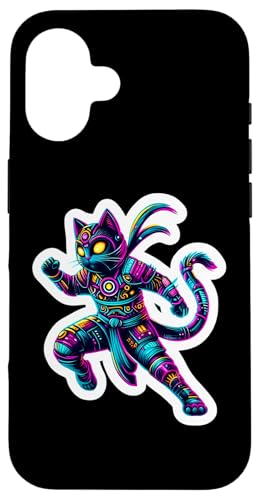 Robot Ninja Steampunk Chat Couleurs Vives Propriétaire Amoureux Coque pour iPhone 16 Plus