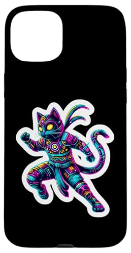 Robot Ninja Steampunk Chat Couleurs Vives Propriétaire Amoureux Coque pour iPhone 15 Plus