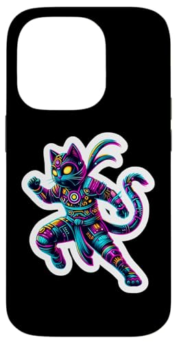 Robot Ninja Steampunk Chat Couleurs Vives Propriétaire Amoureux Coque pour iPhone 14 Pro