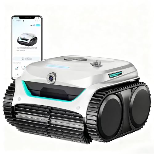 WYBOT Robot de Piscine Automatique avec Nettoyage Puissant - avec Deux Moteurs d'entraînement - Étanchéité IPX8 - Blanc