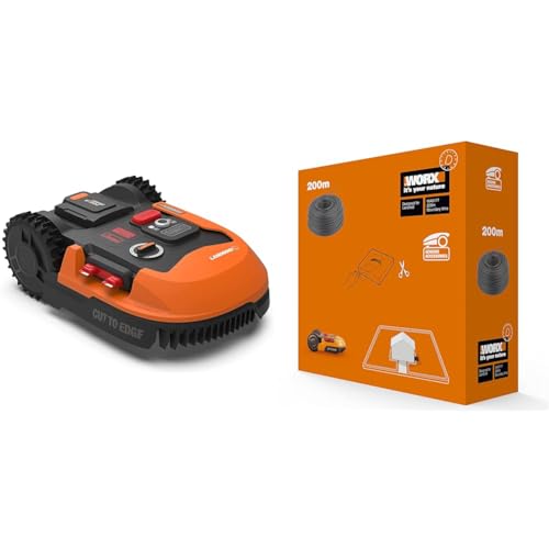 WORX - Robot Tondeuse Connecté LANDROID - WR167E - jusqu'à 700m² & Bobine de câble périphérique - 200 mètres - WA0177