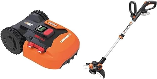 WORX - Pack LANDROID - Robot Tondeuse connecté - WR184E - Jusqu'à 400 m² + Coupe-Bordures WG163E.9 - Ø30cm (pour Une Pelouse aux Finitions Parfaites)