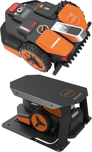 Pack Worx LANDROID Vision 1600m² Robot Tondeuse sans Fil périphérique, WR216E.1 + Garage de Protection (Caméra 4K + IA Adaptative, évite Les Obstacles, Coupe des Bordures, Multizone)