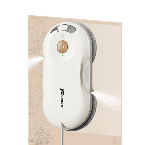 JSDROBOT Lite Robot Laveur de Vitre,5300Pa Robot Lave Vitre avec Essuyage sous Pression Jet d'eau Double Disque de Nettoyage à Haute Couverture Détection des Contours Plan de Parcours Intelligent