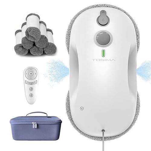 Tosima W2 Blanc Robot Nettoyeur vitre Automatique,Robot Nettoyeur de Vitres with 3800pa de Aspiration puissante,Triple système de sécurité,Lave à télécommand with 12 Chiffons