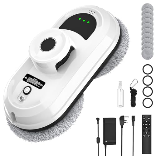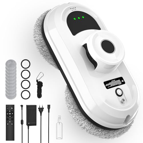 Mioanser Robot Nettoyeur de Vitre, 5600pa Robot Laveur de Vitre Automatique, 3 Modes de Nettoyage, Navigation Intelligente,Détection des Bords, Système de Sécurité, Télécommande et 10 Chiffons