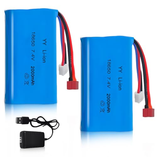 XPJBKC 2s Batterie Lipo, Lot de 2 2000mah Batterie 7.4v Rechargeable avec Deans T Et Xh-3P Plug, Batterie Drone avec Chargeur Lipo pour Voiture Télécommandée Tout-Terrain, Robots Et Cascadeurs