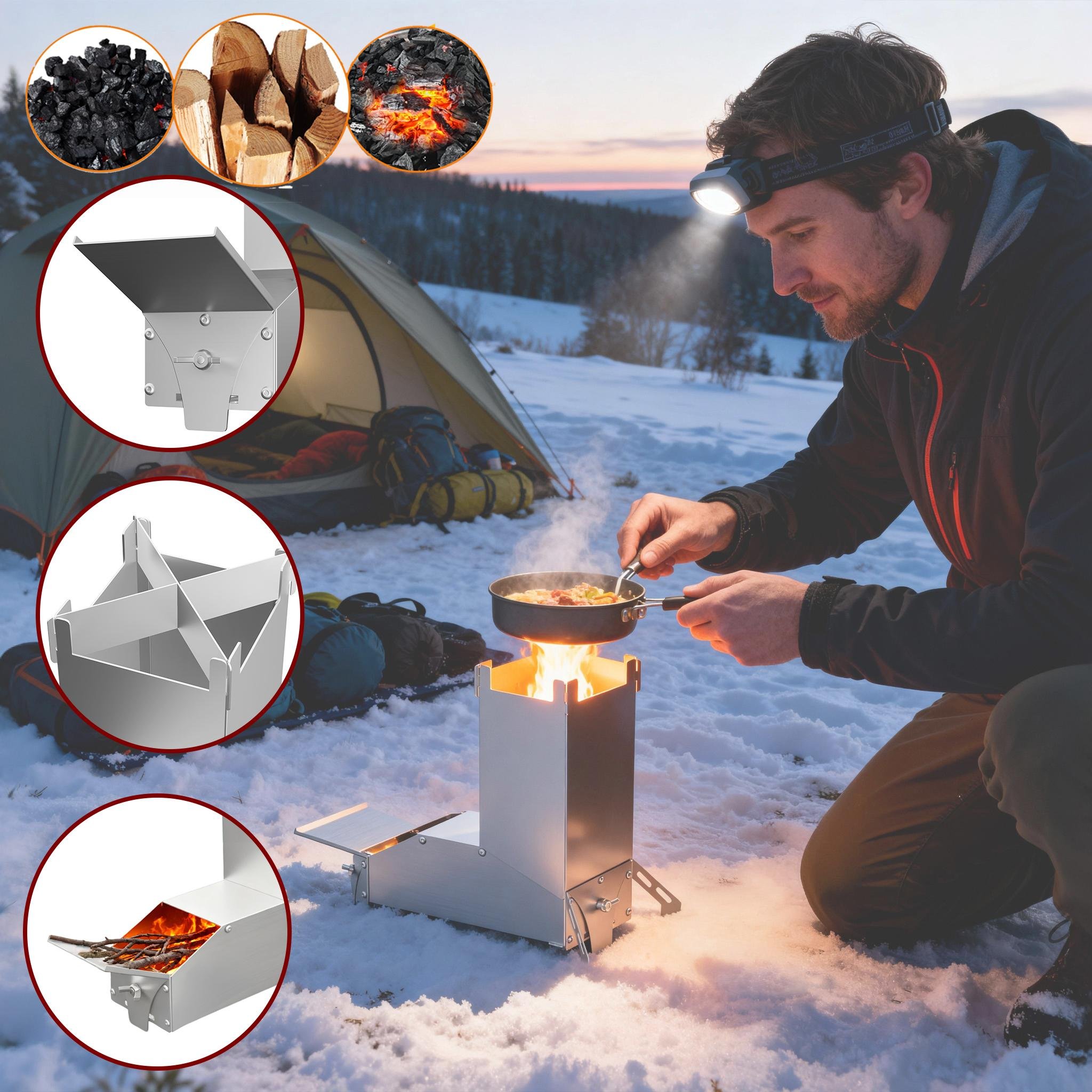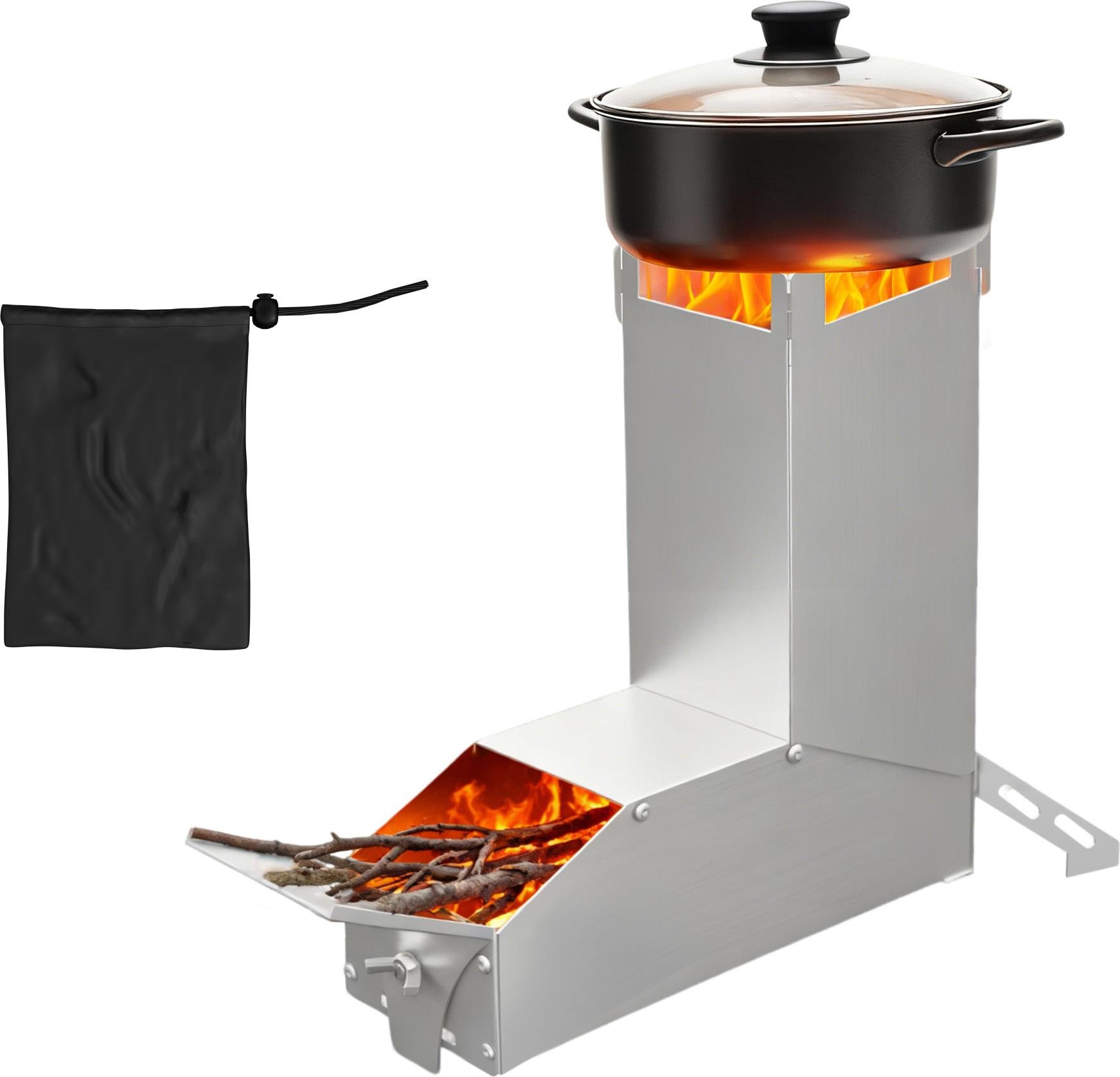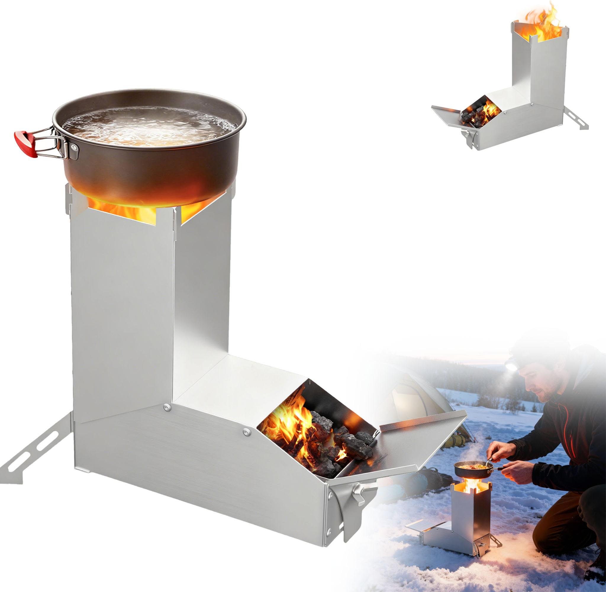 LZQ Poêle-fusée Fusée, Rocket Stove Système d'emboîtement En acier massif Pour l'extérieur, le camping, les situations d'urgence & l'utilisation hivernale, Argent