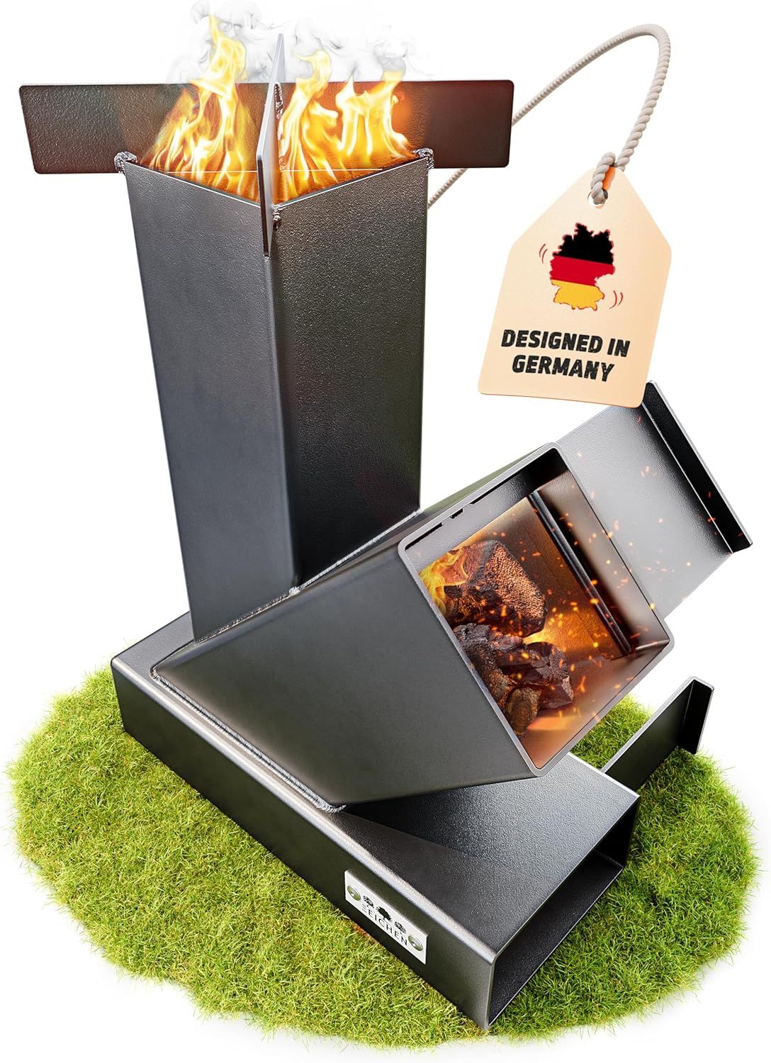 Fire World Poêle à fusée Rocket Stove - Système d'emboîtement en acier massif de 3 mm d'épaisseur - Pour barbecue, fusée, poêle à bois, camping, barbecue de camping - Fabriqué en Allemagne