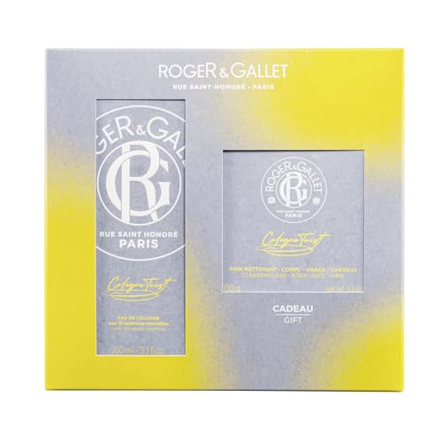 Roger & Gallet - Coffret cadeau Cologne Twist - Eau de Cologne 100ml + Pain Nettoyant 3-en-1 100g Offert - Coffret cadeau Homme Vivifiant aux Agrumes, Aromates & Bois Blancs - Cadeau Homme