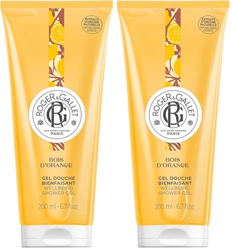 Roger&Gallet - Gel Douche Bienfaisant Bois d'Orange 200ml - Aloe Vera - Base lavante 100% d'origine végétale - Mousse Onctueuse (Lot de 2)