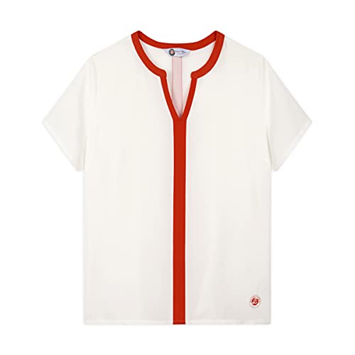 ROLAND GARROS Blouse Femme Noemie Chemisier Femme Chic Manches Courtes - Blouse Femme Chic Coloris Bleu Marine Et Écru avec Bande Centrale - Taille XL - RTSW0220-EMA-XL