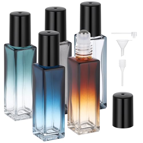 Segbeauty Flacon Roll On Vide, 5 Pezzi 10ml Roll On Huiles Essentielles, Réutilisable et Portable, en Verre, avec Bille Roulante en Acier Inoxydable, pour Huiles Parfumé, Massage