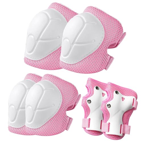 COOLGO Kit de Protection Roller Enfant, Coudière Genouillère Protège Poignet Enfant Set de 6 Protections (Knee+Elbow +Wrist) Support Pad pour BMX, Skateboard, Roller, Vélo, Patin à Glace (Rose)