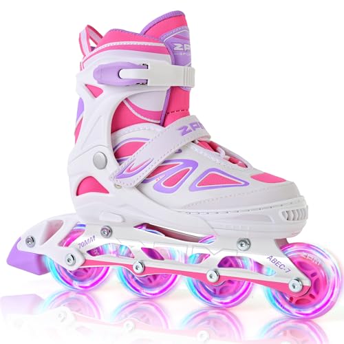 Roller Enfant Fille en Ligne, Patins à roulettes réglables pour Enfants 3 à 9 Ans, Rollers Enfant Fille lumières Amusantes pour Enfants pour débutants (S (EU 28-32))