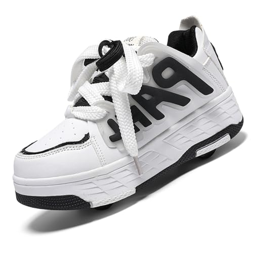 Chaussures à roulettes Escamotables 4 Roues pour Enfants - Basket Roller Garçon Fille (33-40) - Patins à roulettes Cachés, Skate Sneaker Enfant, white-36