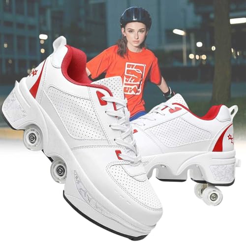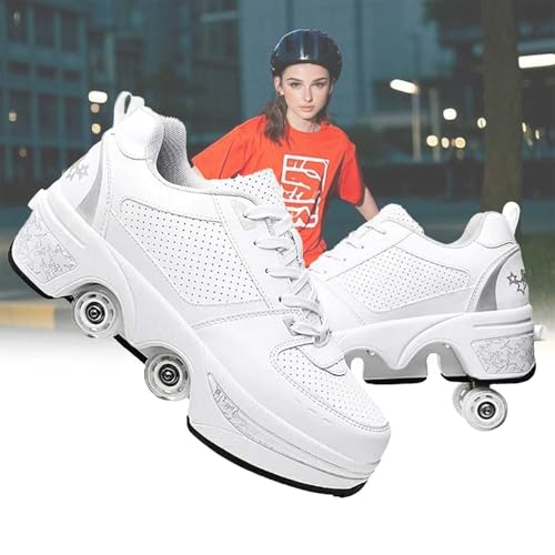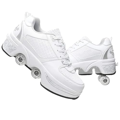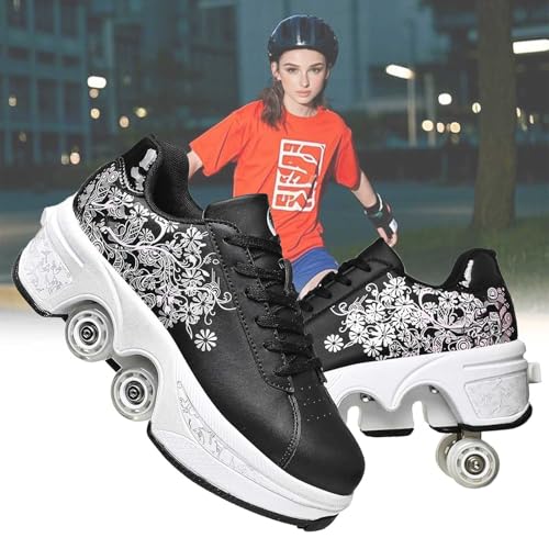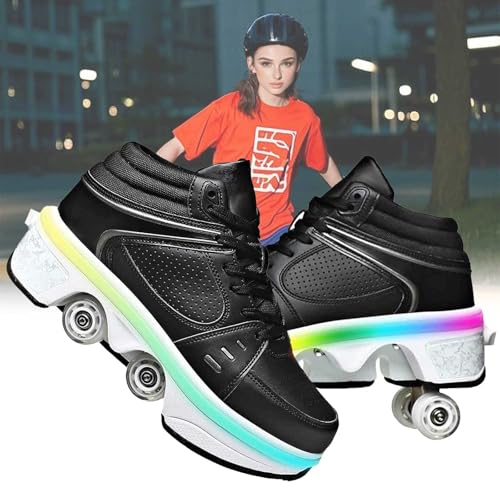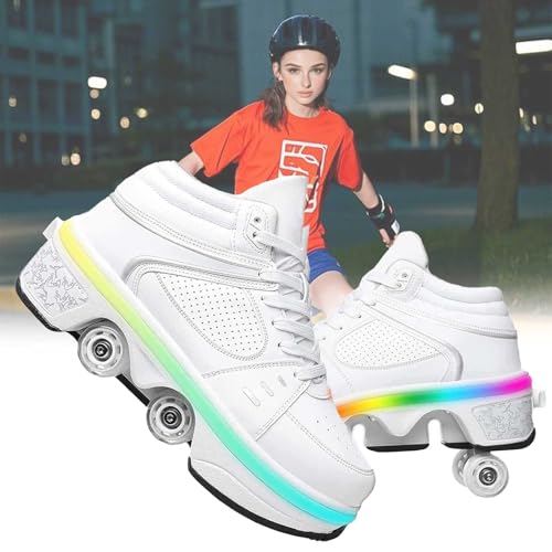 LrpoIv Chaussures à roulettes pour garçons et Filles Basket a Roulette Retractable Baskets Chaussures Qui se transforment en Roller avec 4 Roues pour Adolescents et Adultes