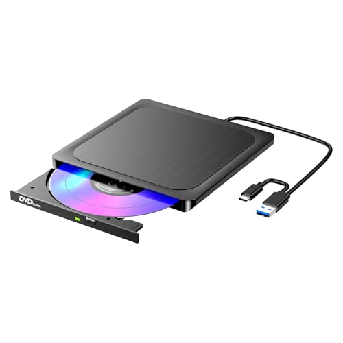 Graveur CD DVD Externe, Lecteur DVD/CD Externe USB 3.0 et Type-C Enregistreur Portable ROM/RW, Lecteur de DVD-ROM DVD-R CD-ROM VCD CD-RW pour Windows 7/8/10/ VISTA/XP/Mac OS 8.6, Laptop, Desktops