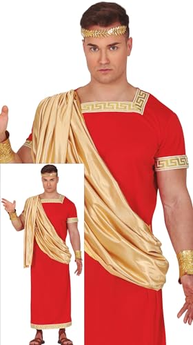 FIESTAS GUIRCA Déguisement du puissant empereur romain pour homme – Rouge et or César Auguste Toge romaine – Déguisement grec pour homme taille M