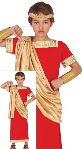 FIESTAS GUIRCA Déguisement du puissant empereur romain pour garçons – Toge romaine d'Auguste rouge et or – Costume du dieu grec pour enfants – Garçons âgés de 10 à 12 ans