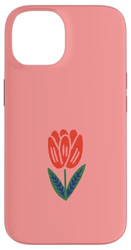 Design rétro en Forme de Tulipe sur Fond Rose Coque pour iPhone 13