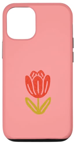 Design rétro en Forme de Tulipe sur Fond Rose Coque pour iPhone 12/12 Pro