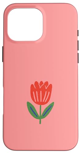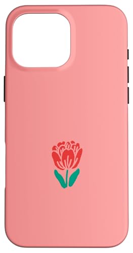 Design rétro en Forme de Tulipe sur Fond Rose Coque pour iPhone 16 Pro Max