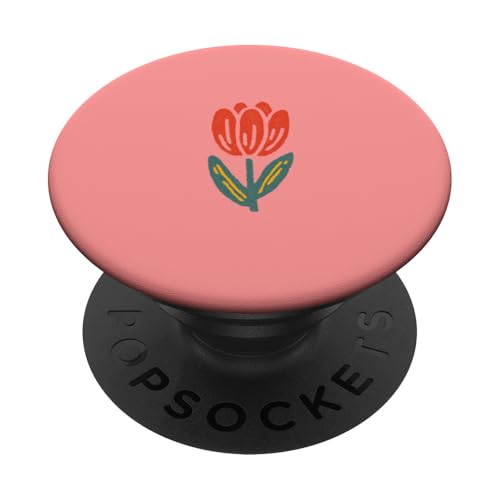 Design rétro en Forme de Tulipe sur Fond Rose PopSockets PopGrip Adhésif
