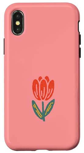 Design rétro en Forme de Tulipe sur Fond Rose Coque pour iPhone X/XS
