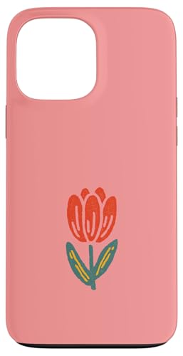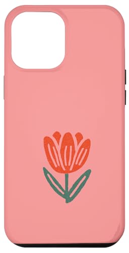 Design rétro en Forme de Tulipe sur Fond Rose Coque pour iPhone 13 Pro Max