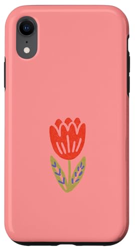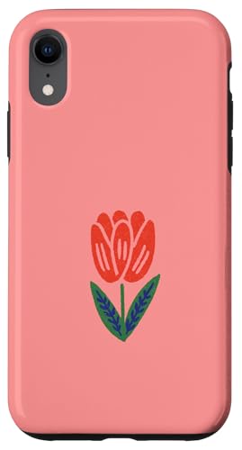 Design rétro en Forme de Tulipe sur Fond Rose Coque pour iPhone XR
