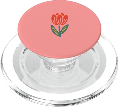 Design rétro en Forme de Tulipe sur Fond Rose PopSockets PopGrip pour MagSafe