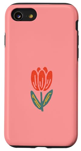 Design rétro en Forme de Tulipe sur Fond Rose Coque pour iPhone SE (2020) / 7/8