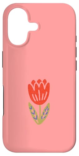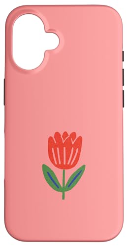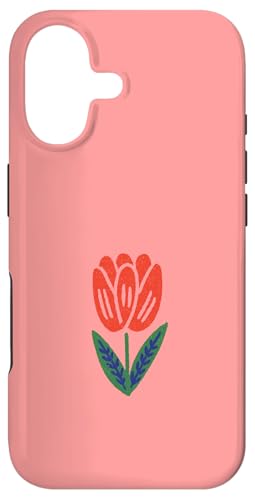 Design rétro en Forme de Tulipe sur Fond Rose Coque pour iPhone 16
