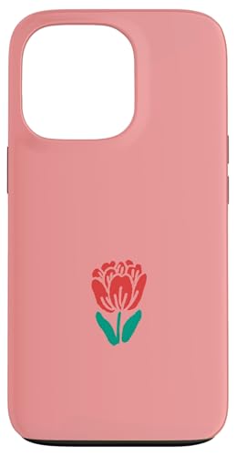 Design rétro en Forme de Tulipe sur Fond Rose Coque pour iPhone 13 Pro