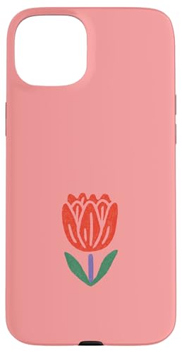 Design rétro en Forme de Tulipe sur Fond Rose Coque pour iPhone 15 Plus