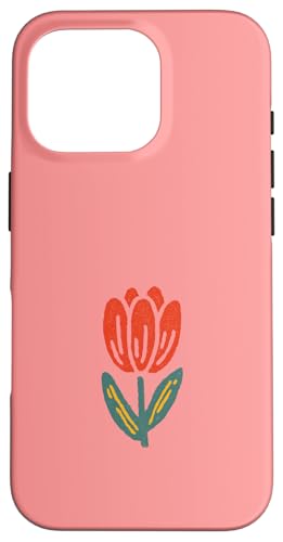 Design rétro en Forme de Tulipe sur Fond Rose Coque pour iPhone 16 Pro