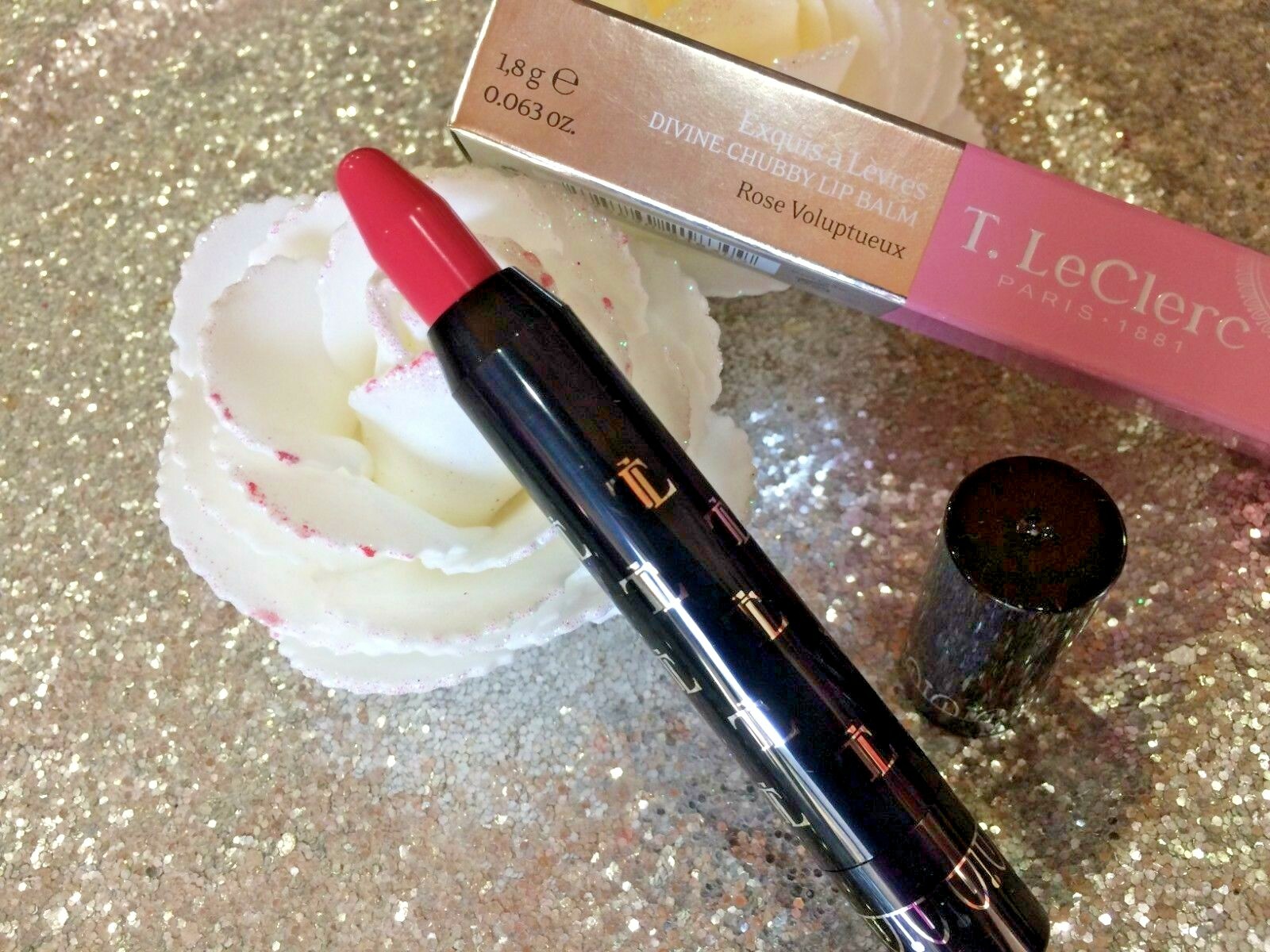T LECLERC BRILLANT A LEVRES 12 ROSE pétale incrusté de paillettes NEUF