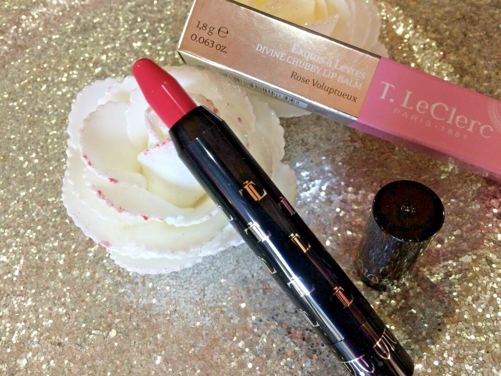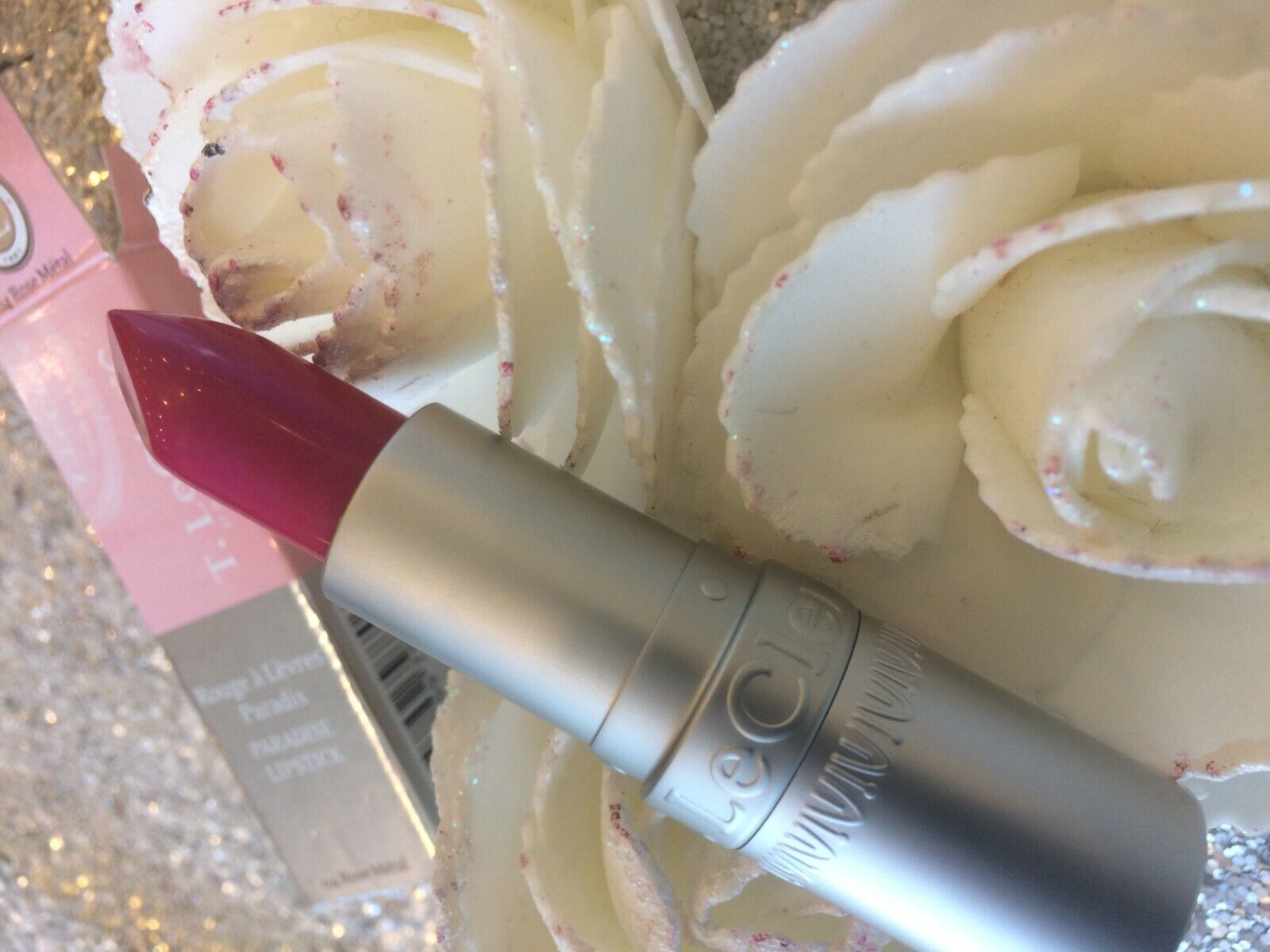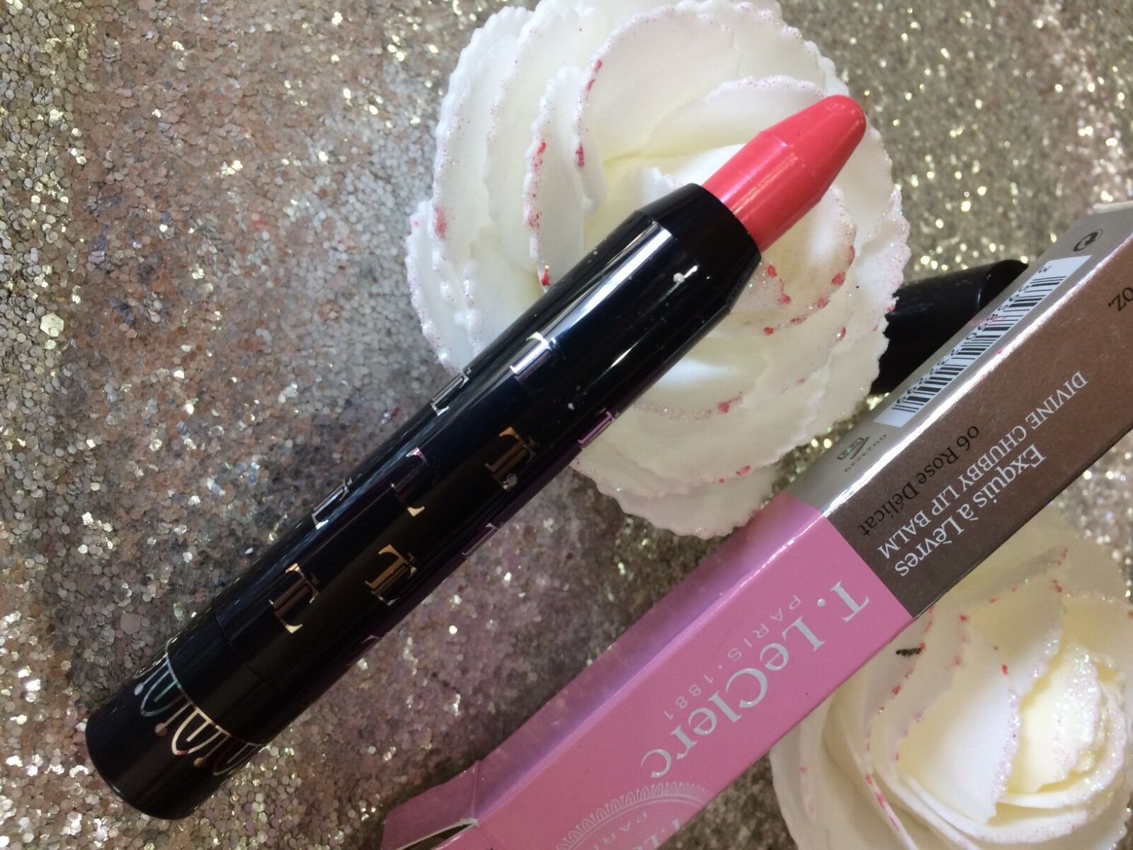 T LECLERC BRILLANT A LEVRES 12 ROSE pétale incrusté de paillettes VALEUR 17€