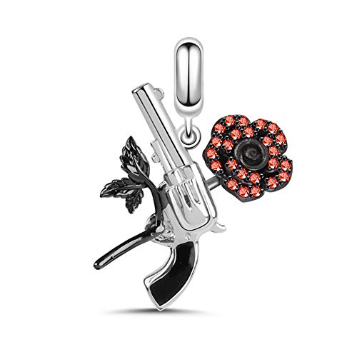 GNOCE Breloque Pistolet En Argent Et Pendentif à Breloque Rose En Argent Sterling 925 Amour Avec Danger Breloque Avec CZ Rouge Pour Bracelet/Collier Cadeaux Magiques De Noël Pour Elle