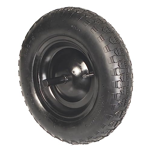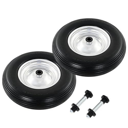 Tidyard Roue de brouette avec axe 2 pcs PU Solide 4.00-8 390 mm Caoutchouc Pneus de Remplacement Increvable Compatible pour Camions Sacs, Chariots Roue, Remorque