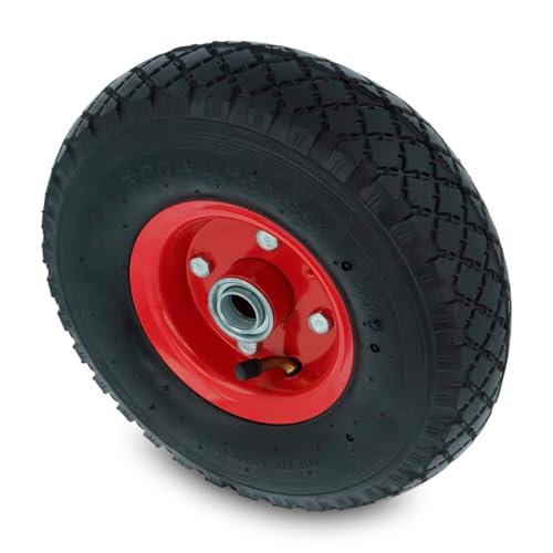 WERKA PRO Roue gonflable 16 pouces pour chariots, diables et remorques de jardin, durable et résistante avec roulements à rouleaux, dimensions 400x105 mm, alésage 25 mm, rouge.
