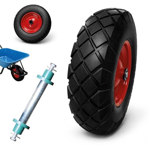 Tidyard Roue de brouette avec axe 2 pcs PU Solide 4.00-8 390 mm Caoutchouc Pneus de Remplacement Increvable Compatible pour Camions Sacs, Chariots Roue, Remorque