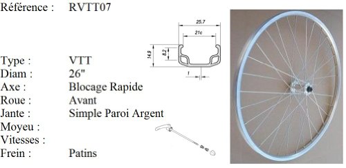 'RMS Roue avant VTT 26 "en aluminium 26 x 1,75 Silver Front Wheel MTB 26 alluminium 26 x 1,75 Silver